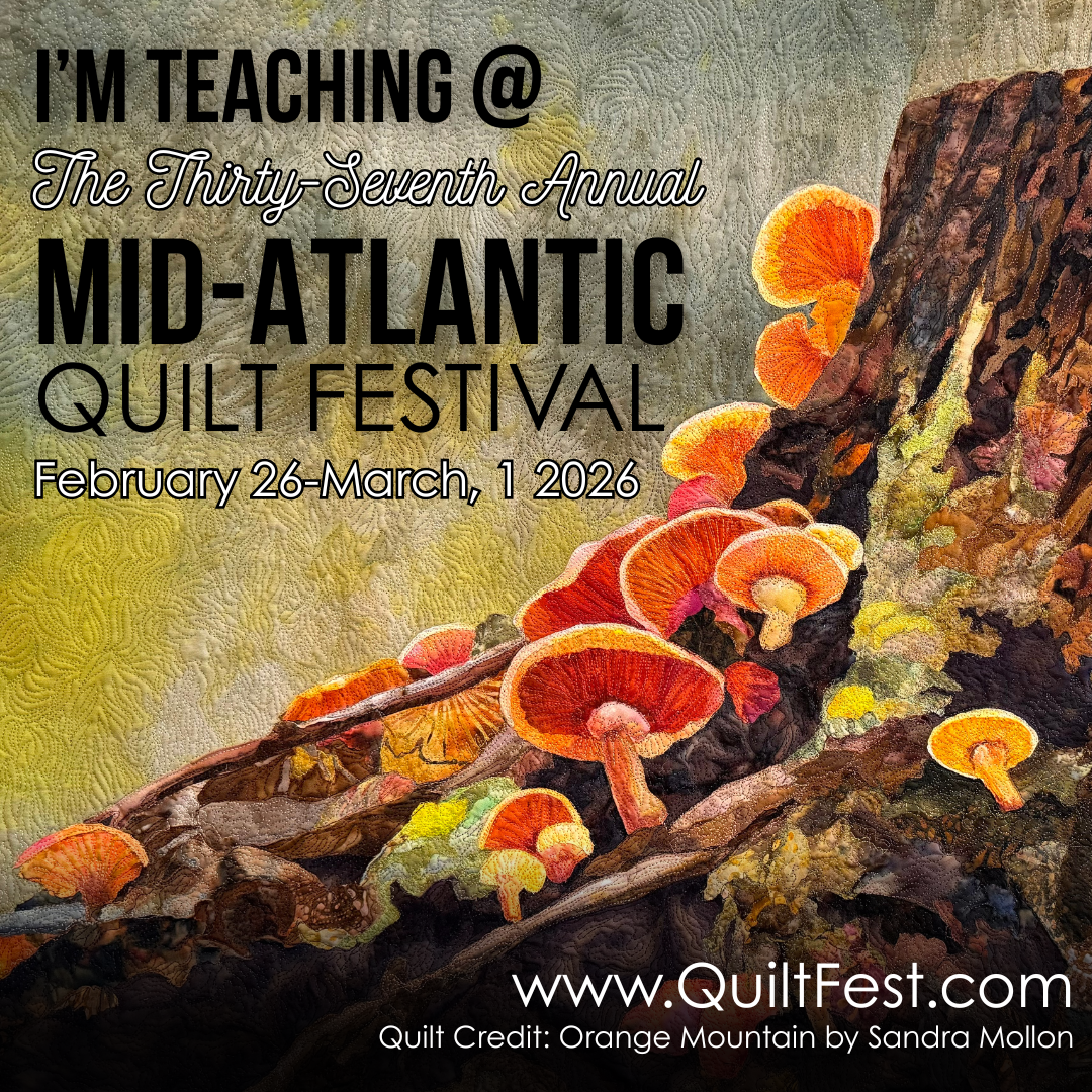 At the end of February 2026, I am excited to announce that I have been invited to teach at the Mid-Atlantic Quilt Festival in Hampton, VA. I will be teaching three workshops starting on February 27. Registration is now open. Check out my In Person workshops here.