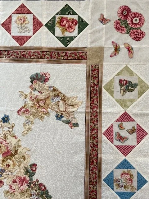 On January 4, 2025, I took the last applique stitch to complete my large Broderie Perse quilt top. (It does not have a name yet). What a monumental moment! According to my quilt journal, I started that quilt in 2013. In various and sundry pieces, that quilt has traveled with me many miles and has seen me through many life adventures.