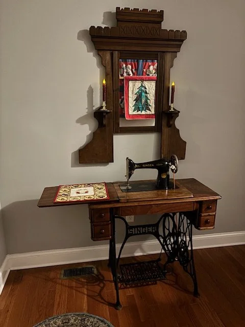 You see, I am the only grand-daughter on the Wood side of the family among 6 Grandsons! What I learned along the way, was that Aunt Hat (my great aunt) and “Meme” pieced more tops than they finished quilts. I remember always seeing this sewing machine open in Meme’s bedroom. I loved it but was not allowed to touch it.